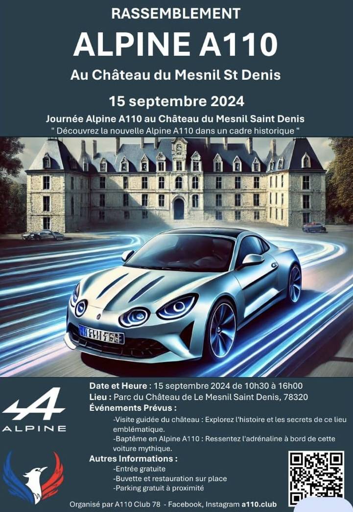 Le 15 Septembre 2024, nous étions présent au 2ème rassemblement du A110 Club 78 au Château du Mesnil Saint Denis dans les Yvelines.